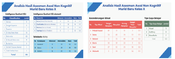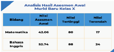 Kami juga melakukan asesmen awal kognitif dan non kognitif pada murid kelas X di awal tahun ajaran baru untuk mengetahui kemampuan awal murid.